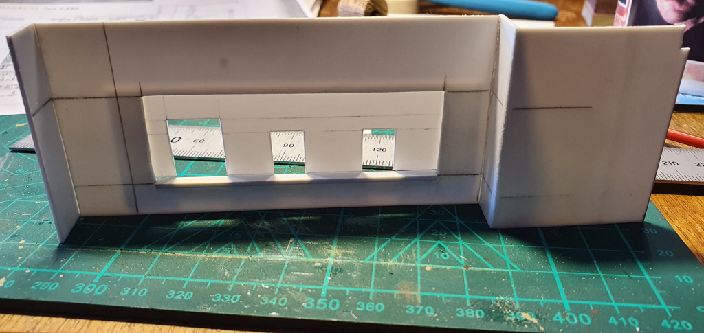 Here is the start to the station interior. I’ve tried to keep it fairly basic, as it’ll hardly be seen. The main details and dimensions are loosely based on Surbiton. We have a large opening for handling Parcels and 2 ticket windows. If I’m honest, a small seaside terminus would probably only have had just the 1 ticket window, but it seems to balance out nicely with 2.