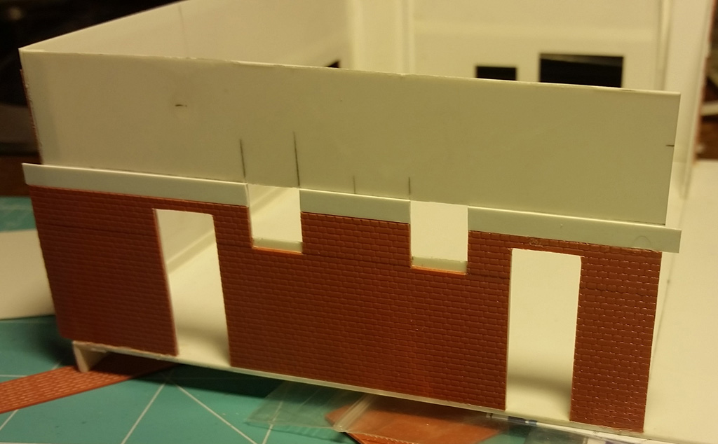 Construction of the building was started by making a shell out of 40 thou plain plasticard and then laminating the exterior layer on top. The following photos and captions explain the rest of the construction.